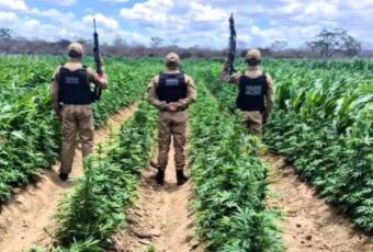 A Polícia Militar destruiu, neste domingo (5), 100 mil pés de maconha na Zona Rural de Camalaú, no Cariri da