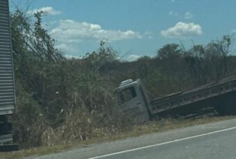 Um caminhão que seguia pela BR-230, na manhã desta sexta-feira (14 de novembro), saiu da pista depois que um dos