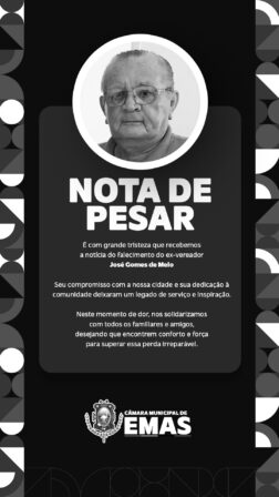 A prefeitura de Emas-PB e a Câmara Municipal de Emas-PB, emitiram Nota de Pesar, em virtude do falecimento do ex-vereador e ex-presidente da Câmara de Vereadores do município, José Gomes de Melo.