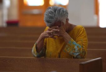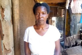 Evarline Okello começa a chorar ao contar que se endividou depois de pagar a um pastor para orar por ela.