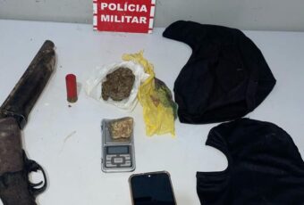 A Polícia Militar apreendeu, nessa terça-feira (11), uma espingarda, drogas, balança de precisão e duas toucas balaclava, após uma troca