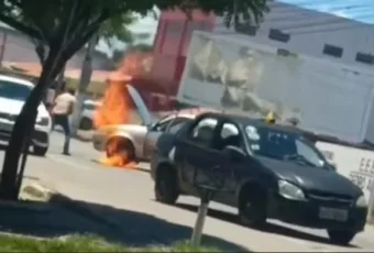 Um motorista incendiou o próprio veículo após ser abordado por agentes de trânsito na tarde deste sábado (22), em Cabedelo,