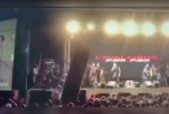 Uma torre de som desabou na noite de ontem (17) durante um show na festa de emancipação política do município