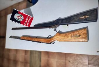 A Polícia Militar prendeu nesta segunda-feira(5), um suspeito de ameaçar o vizinho. Além disso, uma espingarda calibre 36, foi apreendida.