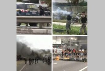 Um confronto entre policiais militares e manifestantes foi registrado no início da tarde desta terça-feira (9). O caso aconteceu durante