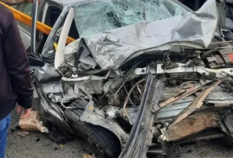 O motorista de um carro ficou gravemente ferido após o veículo que ele conduzia colidir frontalmente com um caminhão na