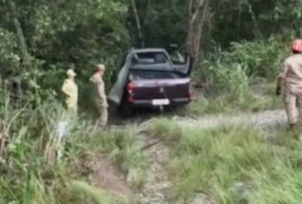 Um homem ficou preso às ferragens, nesta segunda-feira (25), após capotar o carro que dirigia na BR-230, na cidade de