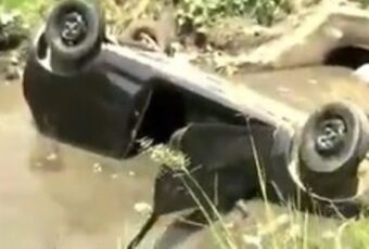 Um carro ocupado por três pessoa, sendo um casal e um bebê de cinco meses, capotou e caiu dentro de