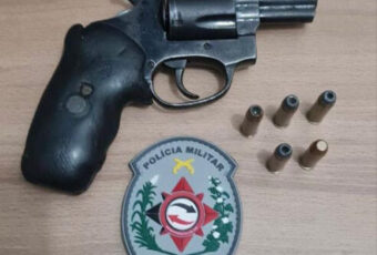 A Polícia Militar apreendeu na noite desta sexta-feira(22), um revólver calibre 32 e munições. A arma de fogo foi retirada