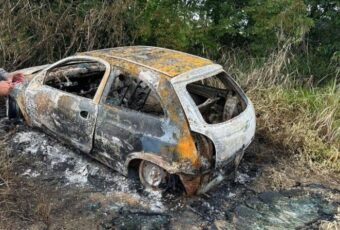 Um corpo carbonizado foi encontrado, na manhã deste domingo (10), dentro do porta-malas de um carro incendiado na cidade de