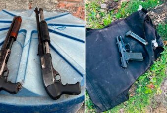 A Polícia Militar prendeu, nessa segunda-feira (21), dois homens que estavam com duas espingardas, pistolas e coletes balísticos, no bairro
