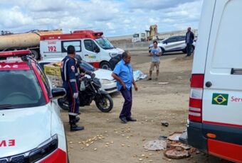 Um grave acidente de trânsito foi registrado na noite deste domingo (23) envolvendo um carro e uma motocicleta. A colisão