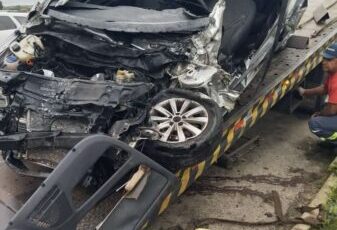 Uma colisão envolvendo um automóvel e um ônibus resultou na morte de um homem e deixou uma mulher ferida na