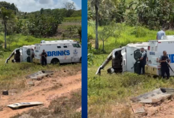 Um carro-forte capotou na manhã deste sábado (20) na PB-034, entre o distrito de Mata Redonda e o município de