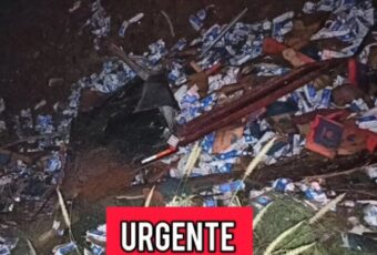 Um caminhão carregado de leite tombou na noite desta segunda-feira (22), na rodovia PB-306, que interliga os municípios de Manaíra