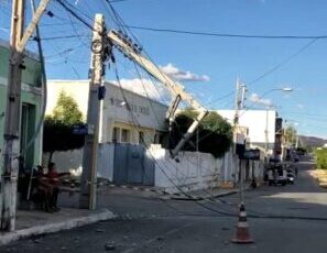 Uma carreta derrubou vários postes na tarde deste domingo (24) no centro da cidade de Conceição (PB). Segundo informações de