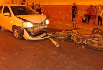 Uma batida entre um carro Etios e uma moto Honda Broz, ocorrida por volta das 1730:h., desta quinta-feira(19),na rua Pedro
