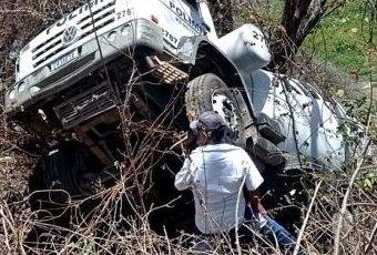 Um caminhão carregado de concreto, tombou na manhã desta terça-feira (10), na PB 400, município de Conceição. O motorista teria