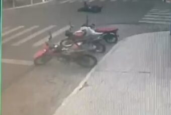 Um grave acidente de moto ocorrido por volta das 10:30h, desta segunda-feira(10), foi registrado por câmeras de segurança, na cidade