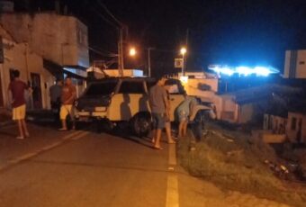 Um motorista com sintomas de embriaguez bateu violentamente em um poste da rede elétrica. O fato ocorreu por volta das