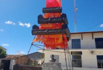 A Prefeitura de Olho D’Água, iniciou a ornamentação junina da cidade. Porém, uma fogueira ornamental, cobriu o busto do ex-prefeito