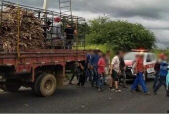 A Polícia Militar abordou um caminhão transportando mais de 30 pessoas em sua carroceria, próximo a cidade de Ibiara, no