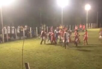 Uma partida de futebol, no fim da tarde desse domingo (9), acabou em pancadaria entre os jogadores na cidade de