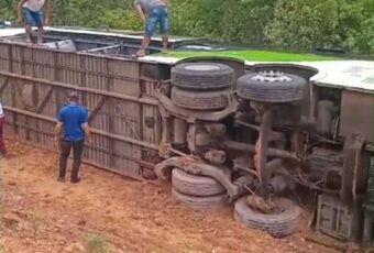 Um ônibus que seguia da cidade de Piancó, Sertão da Paraíba, com destino à Brasília, no Distrito Federal, tombou na