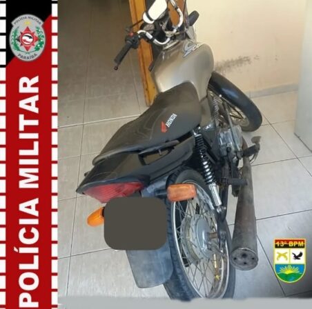 Policiais Militares do 1° PPTran/4° CPTran/BPTran apreenderam neste sábado(5), uma motocicleta, com a placa fora dos padrões de trânsito, na PB 356, entre as cidades de Itaporanga e Pedra Branca.