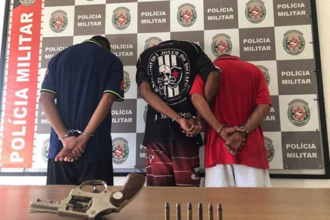 Os suspeitos fugiram a pé e a PM conseguiu localizar o trio após perseguição com uma arma de fogo e munições. Os três homens foram levados para a Central de Flagrantes, no bairro do Geisel.