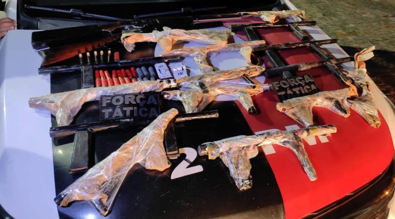 Os criminosos, ao perceberem a presença dos policiais, conseguiram fugir e abandonaram todo o armamento. No local, foram apreendidas: 9 espingardas, calibre 12; 1 rifle, calibre 44; 4 espingardas, calibre 28; 3 espingardas, calibre 24; além de munições de diversos calibres. As armas, que eram de fabricação artesanal, continham adesivos que as identificavam como pertencentes a uma facção criminosa.