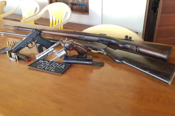 Dentro da residência foi apreendido um fuzil mosquefal, uma espingarda, uma pistola e um revólver.