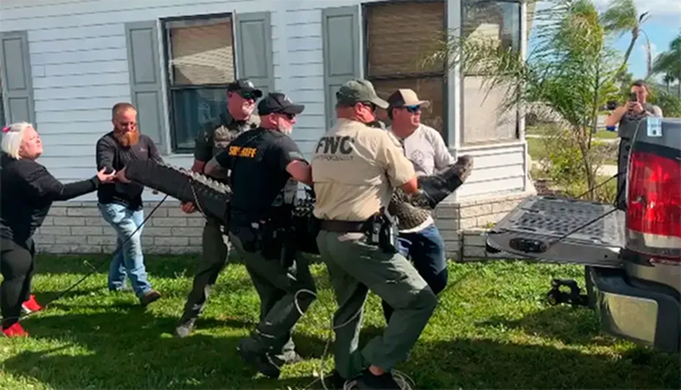 Polícia com jacaré que atacou idosa na Flórida — Foto: divulgação